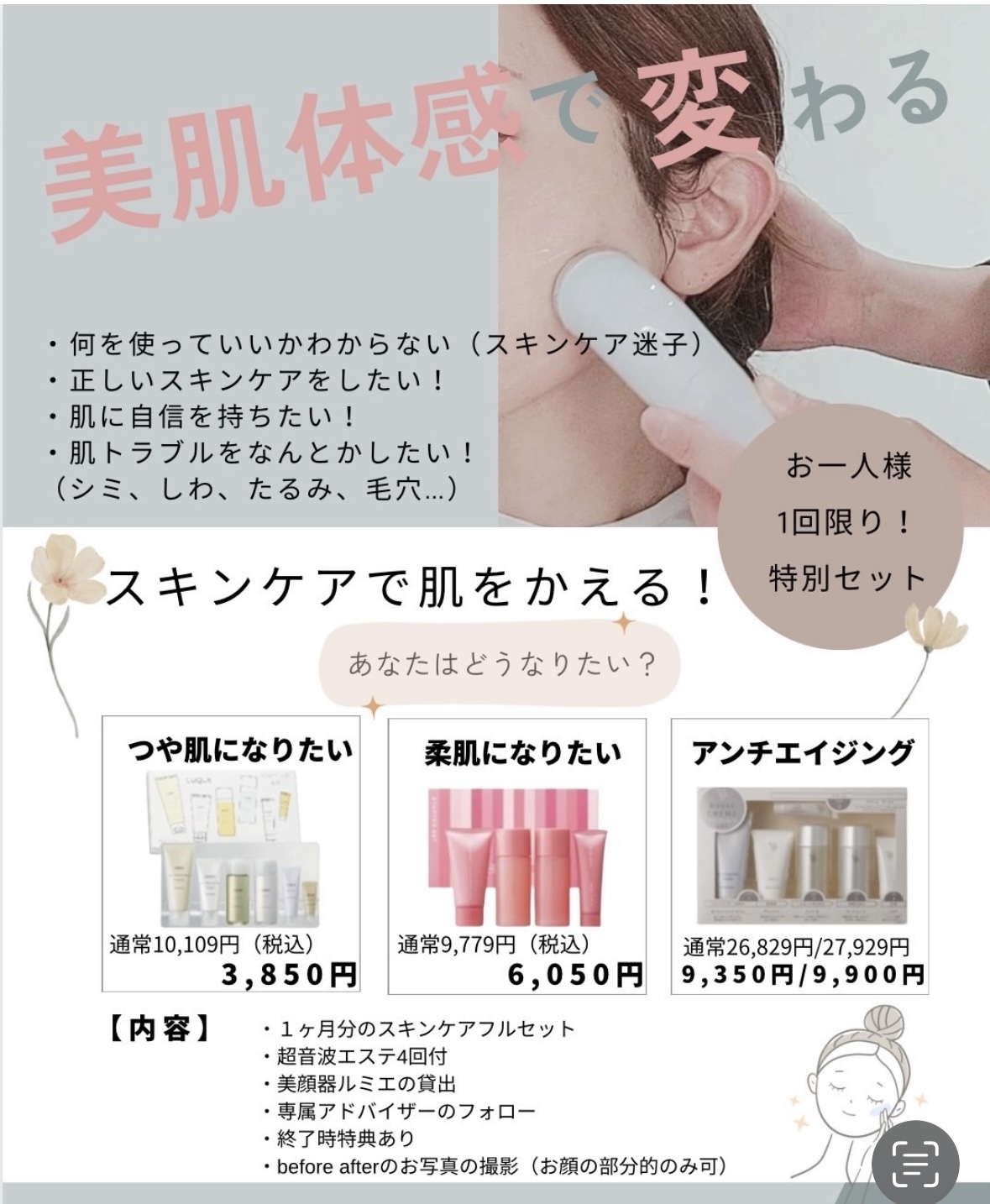 肌質改善エステ90分 4950円